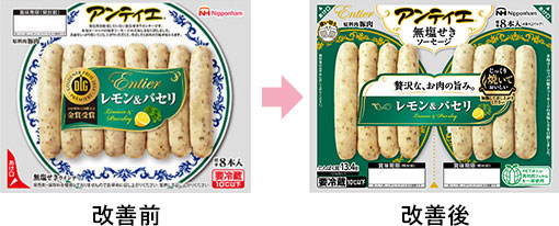 (1)裏面の商品名の文字サイズを大きくし(8pt→9ptへ)、太字にすることで判別しやすくなりました! また、(2)レイアウトも併せて変更することで裏面が見やすくなりました!