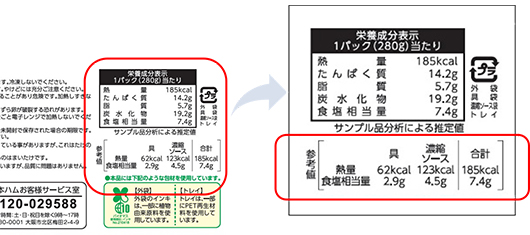 具とソースの熱量と食塩相当量を分けて表示することにより、お客様が食塩相当量を把握できるようにしました!