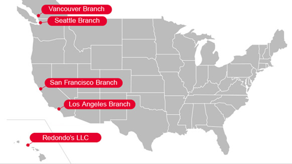 ロサンゼルス、サンフランシスコ、シアトルなど西海岸エリアの拠点で約1,500店舗の顧客へ商品を提供しています。自社トラックによる個店配送が可能なため、食材の鮮度を保ち、需要の変化に対しても迅速に対応することが可能です。