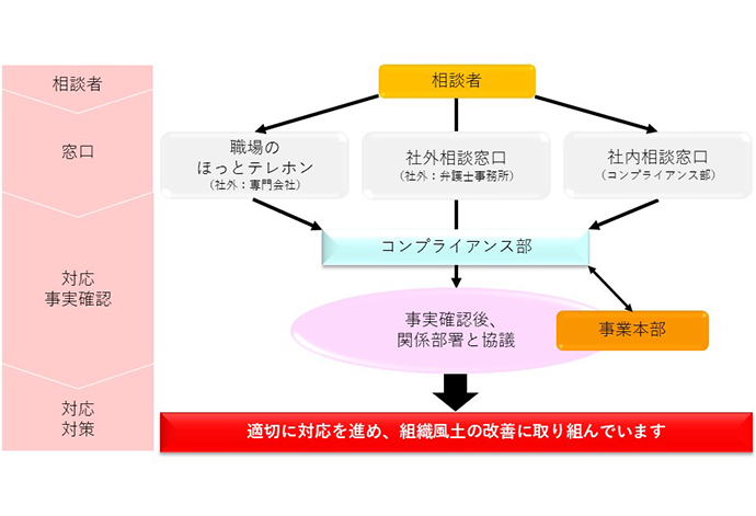 また、調査により個人への教育や職場風土改善の必要性が認められた場合は、再発しないよう対策を実施します。