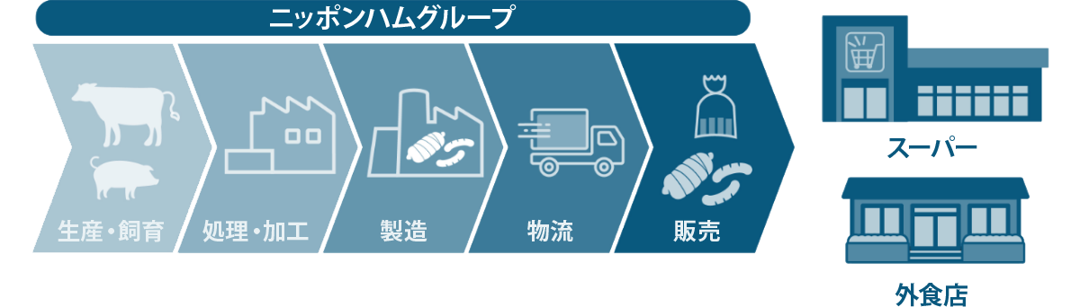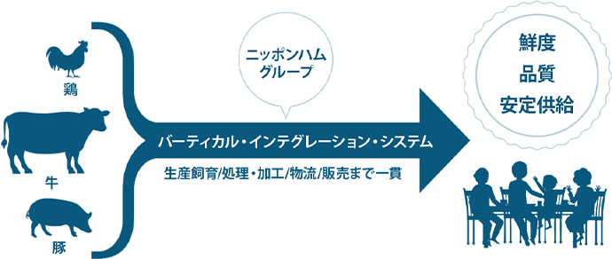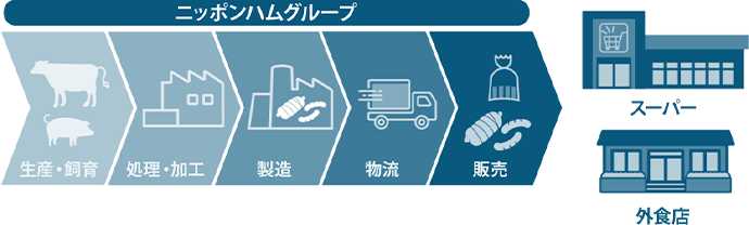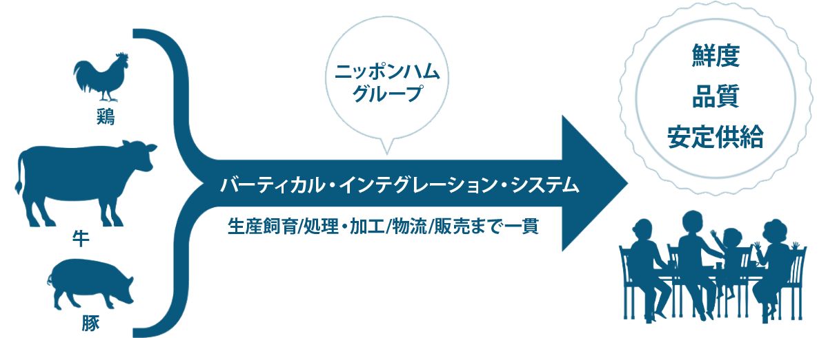 ニッポンハムグループが生産・飼育・処理・加工を行っている