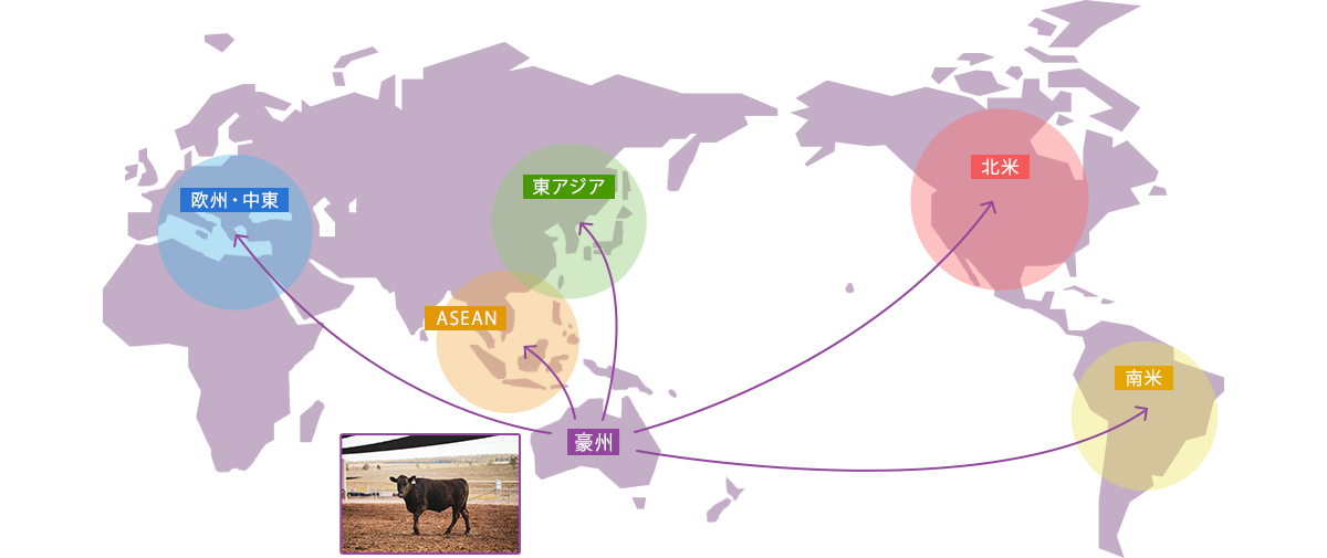 オーストラリア産牛肉は、世界の国・地域にお届けしています。