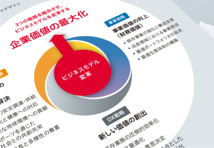 事業価値の向上に向けた「最適生産体制の構築と最適ポートフォリオの追求」と「ROIC経営の施策」、事業遂行上のリスクと機会、社会価値の向上を目指すマテリアリティの進捗、新しい価値の創出を支える「IT・DXの取り組み」をご覧いただけます。