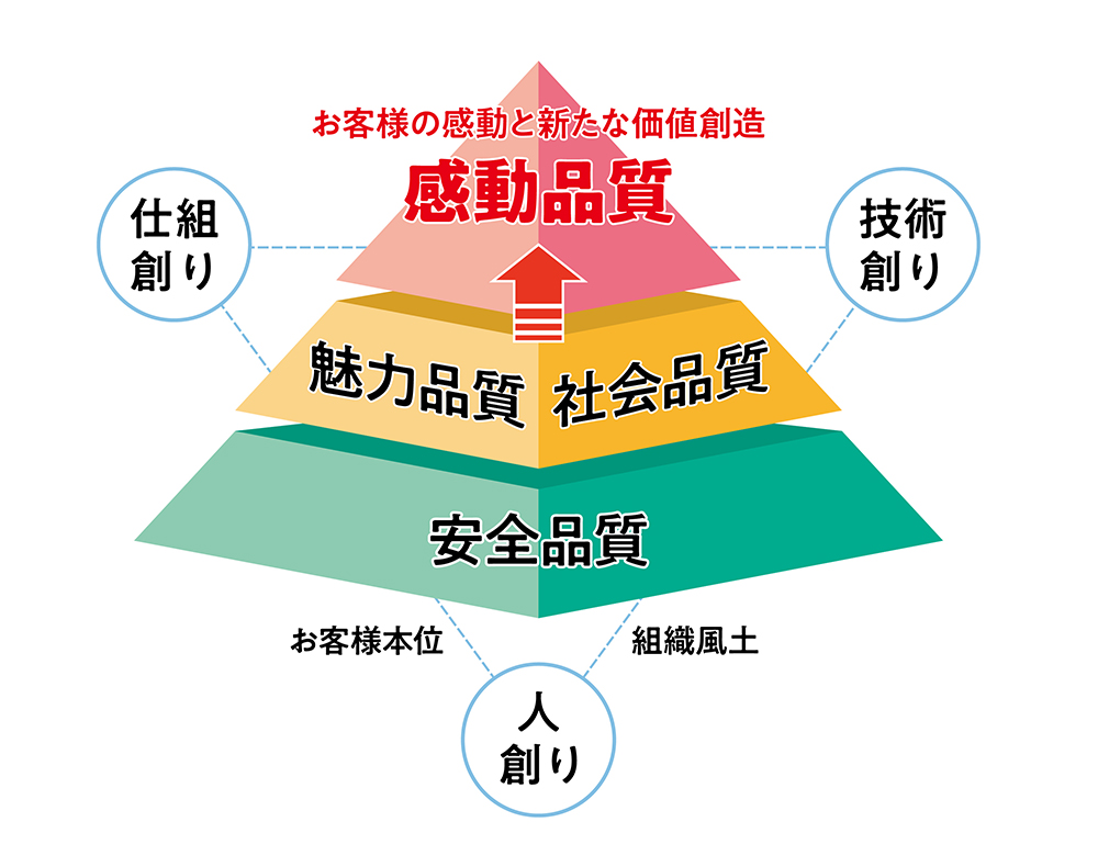 - 品質をグループの最も大切な価値とし、人・技術・仕組を創り、安全でより良い品質を目指す活動を全役職員で継続します。