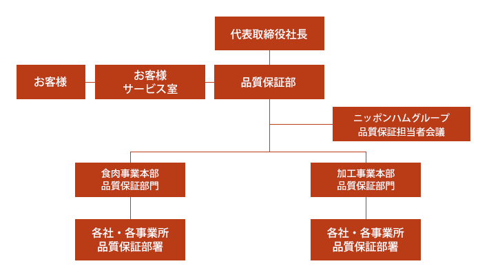ニッポンハムグループでは、グループ全体の品質保証戦略の立案や各種方針の策定・共有など、グループ全体を横断した品質保証活動を推進しています。