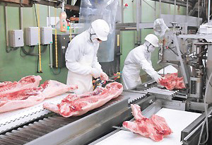 食肉事業本部では、生産、飼育を行った豚や鶏の処理段階において