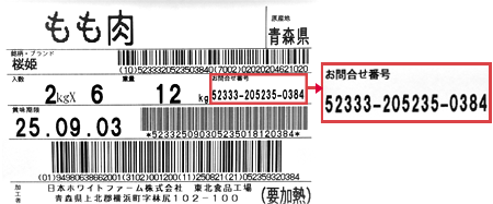 カートンラベルに15桁の「お問合せ番号」が表示されていますので、こちらを当社営業担当者までお知らせください。