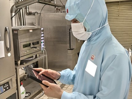 帳票記入・管理を紙媒体からタブレット入力に移行しています。電子帳票システムを導入し、タブレットに直接データを入力する事で、データを再入力する際の転記リスクの防止、紙媒体のファイリング時間・スペースを削減しています。また入力されたデータを活用して製造DXの推進にも着手しています。