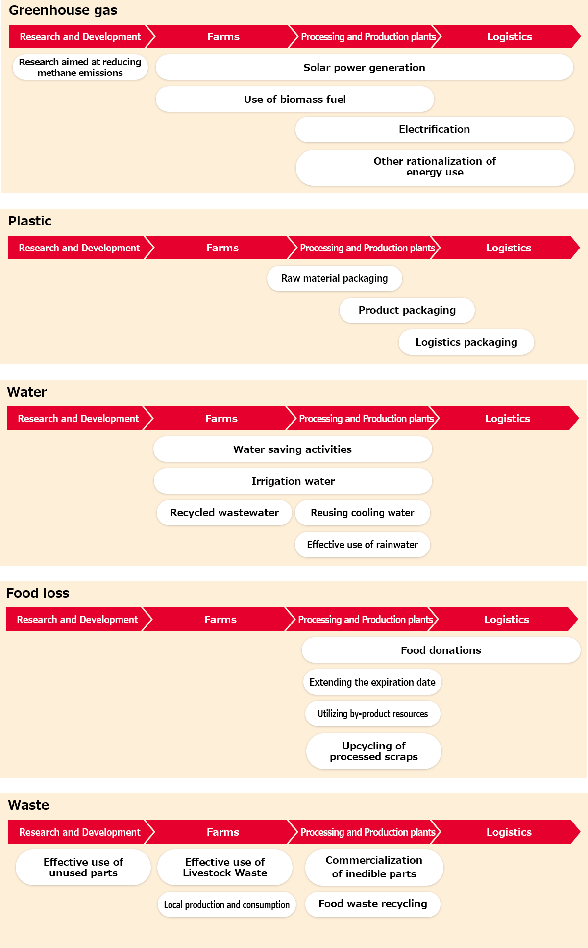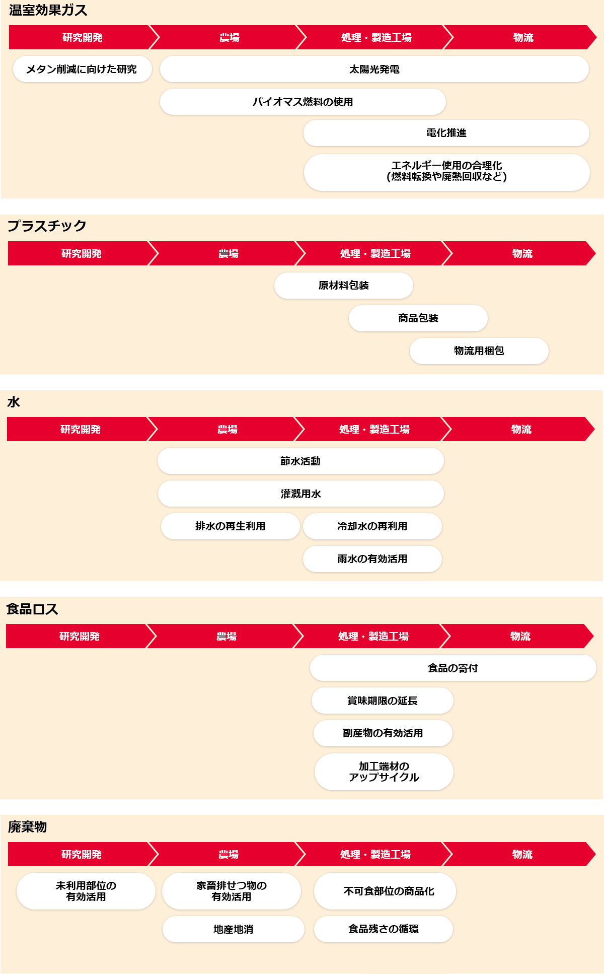 重点項目ごとの生産プロセスにおける取り組み