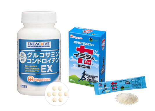 日本ハム(株)中央研究所では、十分に活用しきれていない豚や鶏の軟骨、豚の胎盤などから、コラーゲンやプラセンタエキス、コンドロイチンなどの機能性素材を抽出し、安全性や有効性を科学的に評価して商品化しています。
