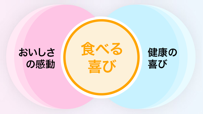 「食べる喜び」とは、「おいしさの感動」と「健康の喜び」を表しています。