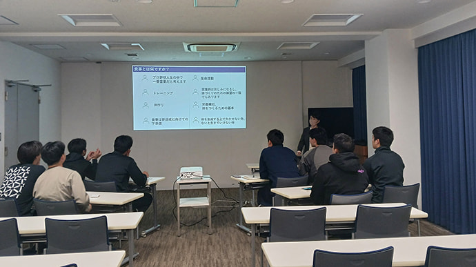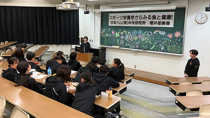 日本ハム(株)所属の管理栄養士・公認スポーツ栄養士が講師として自治体、学校などの講演やセミナーに登壇し、栄養サポートのエピソードを交えながら、スポーツに取り組む子どもたちと、指導者や保護者といった支える人へ「食べることの楽しさや大切さ」を伝えています。また、栄養士養成課程の学生やスポーツトレーナーを目指す学生に向けて、スポーツ栄養指導の実際を伝える講義を通して、次の世代の育成を支援しています。