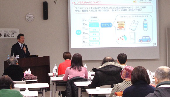 ニッポンハムグループは、食育活動の一環として、消費者を中心にステークホルダーに対してプラスチック問題や食品ロス削減に関する講演を行っています。