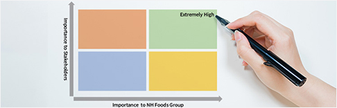 We have identified important social issues to be addressed in order to realize the "NH Foods Group Vision2030" as the NH Foods Group’s “Materialities”