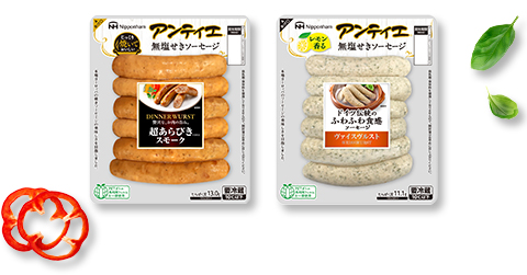 生ソーセージと同じ「無塩せき」にこだわるアンティエは、細菌を抑制する効果のある発色剤を使用しないため、短時間でお肉の旨味を引き出さなければなりません。そこが開発の難しさでした。
