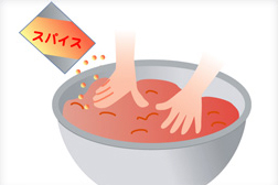 スパイスは7種類(マイルド、ガーリック、カレー、ブラックペッパー、チョリソー、レモン&パセリ、ハーブ)からお選びいただけます。【約5分】