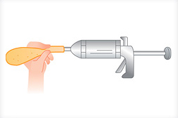 ハンドスタッファー(充填機)の両端を外して、白い筒の中に八分目までミンチ肉を入れます。
