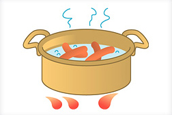 ポイントは、茹ですぎないようにすることです(パンクしてしまうので)