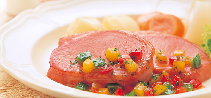 ロースハムステーキの3色ソース