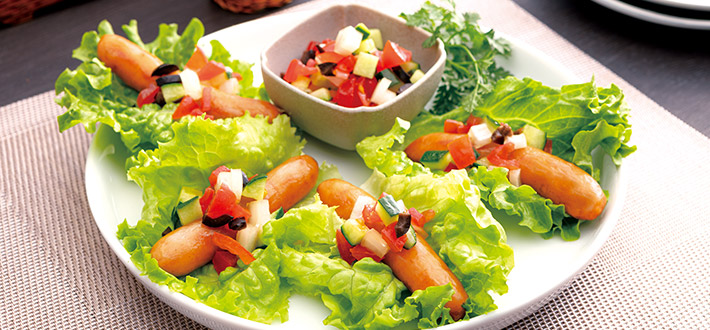 野菜たっぷりビネガーソースのウインナーレタス包み