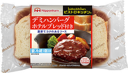 ふっくらした食感のハンバーグに、濃厚でコクのあるデミグラスソースを合わせた「デミハンバーグ ホテルブレッド付き」も同時発売!