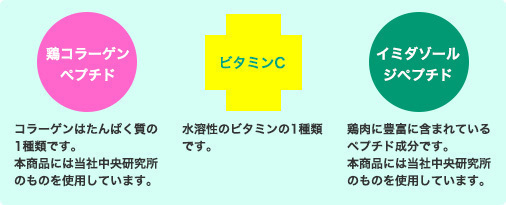 ポイント3.イミダゾールジペプチド・ビタミンC・コラーゲンペプチド含有