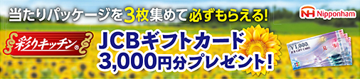 「必ずもらえる!JCBギフトカード3,000円分プレゼント」