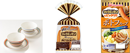 店頭では8月20日に発売となった「シャウエッセンにピッタリ!!ポトフスープ」との関連販売を行うほか、プレゼントキャンペーンを実施。プレゼントの景品には、TVCM中にも登場する人気のiittalaのスープボウルのセット等をご用意し連動を図ります。