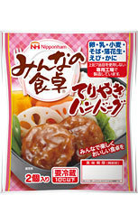 てりやきハンバーグ ハンバーグでてりやき味をつくりました。しょう油を使わないてりやきソースを使用しています。