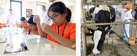 『「食べる喜び」を届ける仕事体験 in 北海道』は、函館のソーセージ工場でソーセージの歴史や製造過程を学び、工場での仕事体験、また札幌の飼育施設での酪農体験や、札幌ドームでのお客様満足を高めるための仕事を体験します。これらの仕事体験を通して、「食べものを大切にする気持ち」を育み、「食への関心」を深めることができるプログラムです。