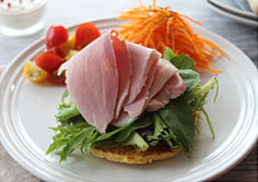メニュー例)糖質0切り落としももハムとおからのパンケーキ ・サラダやサンドイッチなど、手軽に使いやすい切り落としタイプです