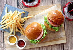 ・切れ目を入れたロールパンを軽くトーストし、ケチャップを塗って焼いた本商品を挟んで召し上がり下さい