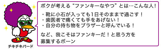 チキチキボーンTwitter公式アカウントをフォローして、我こそはファンキーだと思う理由(言葉でも画像でも可)をハッシュタグ(#)を付けてツイートしてください。