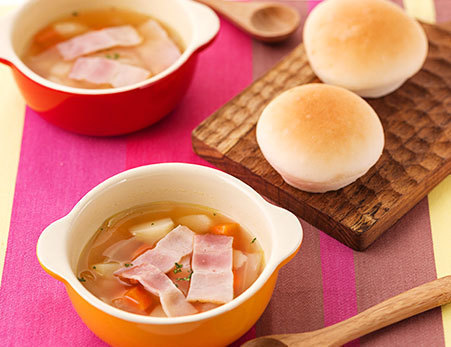 みんなの食卓® ベーコン入り野菜スープとお米で作ったまあるいパン