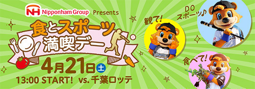 日本ハム株式会社(本社:大阪市北区、社長:畑佳秀)は、2018年4月21日(土) ファイターズ鎌ケ谷スタジアムにおいて、昨年に引き続き『ニッポンハムグループPresents食とスポーツ満喫DAY』を開催します。