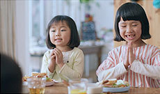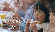 弊社が食物アレルギー対応食品の研究・開発に取り組みはじめたきっかけである「お客様の声」に、従業員が耳を傾けるシーンから始まります。そして、食物アレルギー対応のハム・ソーセージやハンバーグ、米粉パンなど豊富なメニューで彩られる食卓を前に笑顔を見せる子どもたち。元気よく「いただきます」をした後に、思い思いにサンドイッチを頬張ります。これらのシーンを通じて、今後も「お客様からいただくお声・お客様との対話を大切にしながら全ての人に『食べる喜び』をお届けしたい」という弊社の企業姿勢と、食物アレルギー対応商品「みんなの食卓」のブランドに込めた想いを広く消費者の皆さまへお伝えしてまいります。