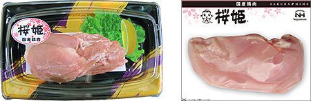 国産鶏肉 桜姫マークのついた精肉、桜姫産地パック
