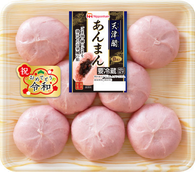 この度、5月1日 新元号『令和』への改元施行にあたり、お祝いの意を表す「桃色の皮」で包んだ『天津閣 あんまん』を5月末出荷までの期間限定で発売致します。