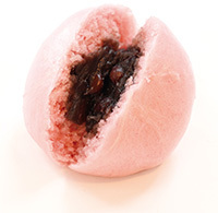 ・ハレの食卓に合う華やかな「桃色の皮」で「つぶあん」を包んだあんまんです
