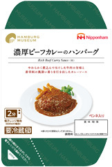 ・やわらかく煮込んでほぐした牛肉と香辛料で仕上げたビーフカレーソースのハンバーグ