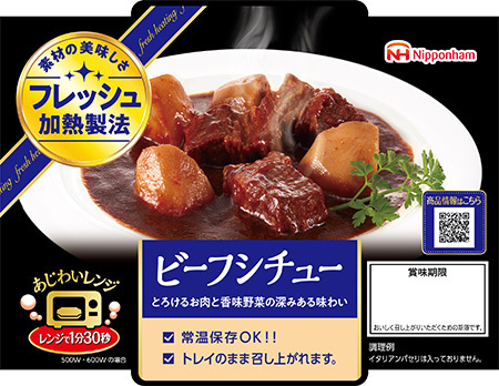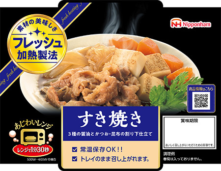 日本ハム株式会社(本社:大阪市北区、社長:畑 佳秀)は、3月10日(水)より「あじわいレンジ 肉じゃが」、「あじわいレンジ すき焼き」、「あじわいレンジ 牛バラ大根」、「あじわいレンジ ビーフシチュー」、「あじわいレンジ ハンバーグステーキ」、「あじわいレンジ バターチキンカレー」の計6品を新発売します。