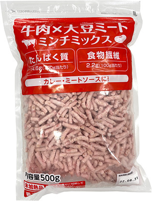 | 特徴 | ・使いたいときに、使いたい分だけ使えて便利! ・商品パッケージの裏面には江上料理学院監修のレシピを掲載しています。 ・牛肉50%配合 ・100g当たり、たんぱく質14.6g、食物繊維2.2g ・カレー、ミートソース、スープ、炒めもの等、幅広いメニューでご使用いただけます。 |