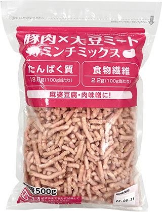 | 特徴 | ・使いたいときに、使いたい分だけ使えて便利! ・商品パッケージの裏面には江上料理学院監修のレシピを掲載しています。 ・豚肉50%配合 ・100g当たり、たんぱく質18.8g、食物繊維2.2g ・麻婆豆腐、肉味噌、スープ、炒めもの等、幅広いメニューでご使用いただけます。 |