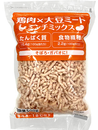 | 特徴 | ・使いたいときに、使いたい分だけ使えて便利! ・商品パッケージの裏面には江上料理学院監修のレシピを掲載しています。 ・鶏肉50%配合 ・100g当たり、たんぱく質16.4g、食物繊維2.2g ・そぼろ、ガパオ、スープ、炒めもの等、幅広いメニューでご使用いただけます。 |