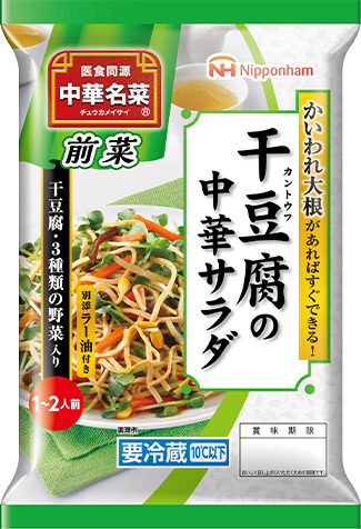 秋冬に旬を迎え、年間を通じて価格が安定している「きのこ」と合わせる新商品と前菜シリーズから火を使わず、野菜と和えるだけの「干豆腐(かんどうふ)」を使った新商品を提案いたします。