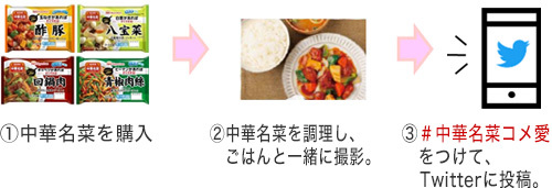 Twitterに『#中華名菜コメ愛』をつけて、中華名菜の調理写真を投稿