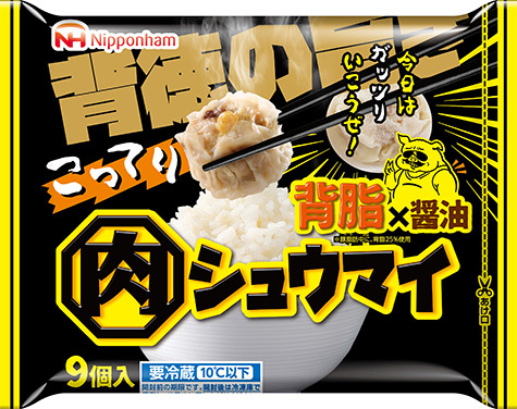 新発売の「背脂こってり肉シュウマイ」は、背脂を使用し、醤油でしっかり味付けした肉シュウマイです。“背徳感”をそそる食べ応え十分のガッツリ系肉シュウマイでご飯が進みます。