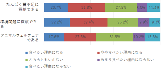 「たんぱく質不足に貢献できる」「環境問題に貢献できる」「アニマルウェルフェアである」
