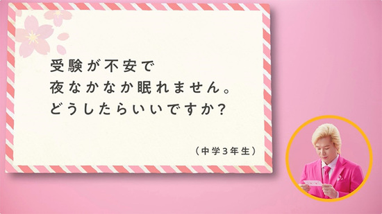 今回のWebムービー第1弾は、「桜姫」のイメージカラー“桜色”のスーツを着たカズレーザーさんが、受験生や受験生を支える家族の皆さんからのお悩みに一問一“鶏(答)”形式で答える内容となっています。お悩みに対して、カズレーザーさんらしい独特の視点で解答いただきました。