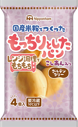 | 特長 | ・冷蔵保存、電子レンジ調理でもちもちの食感をお楽しみいただけます。 ・国産米粉を使用した米粉生地のあんぱんです。 ・グルテンフリー食品です。 ・食物アレルギー対応商品です。 |